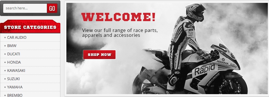 Thrills can be found around every corner in life but adrenaline starts pumping when racing speeds into the picture. Leather jackets and gear go on, helmets fit like a glove, and tires peel off into the distance. No hill is an obstacle and every turn is leaned into for a seamless ride. At A-Squared Racing customers can find speedy shopping and take off with top quality racing accessories. The shop just crossed the finish line with a brand new eBay store design. OC Designs Online took their desired look and implemented a strong brand image for a trophy worthy storefront!