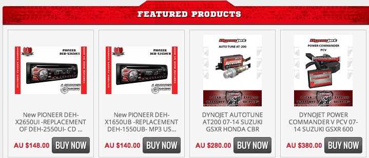 The footer of this eBay shop design is designed specifically for highlighting products in the shop. Owners can showcase new inventory, sale items, items easily overlooked and top sellers! Each tab hosts an individual product with a high resolution image, brief description, and option to “Buy Now” through the Australia eBay shop! The price is in a bold red font so there’s no question about the deal before you!